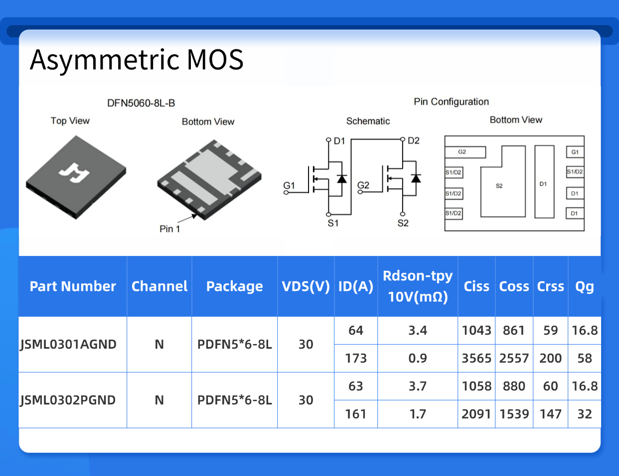 JSML0302PGND:在PDFN5×6封裝內(nèi)實(shí)現(xiàn)0.9mΩ超低阻抗,電流能力達(dá)173A